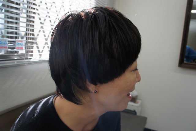 まだ全体的に東洋人の堅さがあるので、今後は伸ばしてパーマをゆるくかけたいと思います。