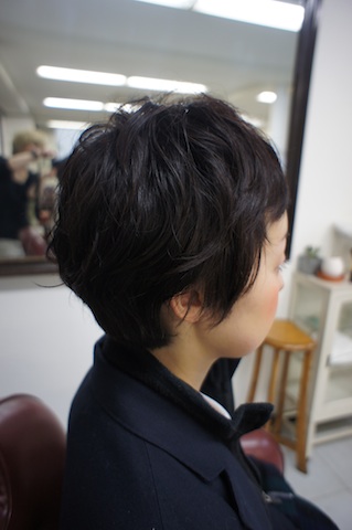 今回はややゆるめにかけてますが、次回は、この「頑固髪」中心に強めのパーマをかけてもよろしいでしょうな。
