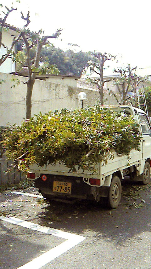 スッキリ2 投稿日2011年3月25日2020年1月31日投稿者chronicle トラックに溢れだすくらいに茂ってたんですねぇ 高いところまでスッキリです お店の観葉植物がスッキリしたなと思ったら、お店の外もスッキリしました(≧▼≦) ちょっと見晴らしが良くなりすぎて木々達は恥ずかしそうに見えました。