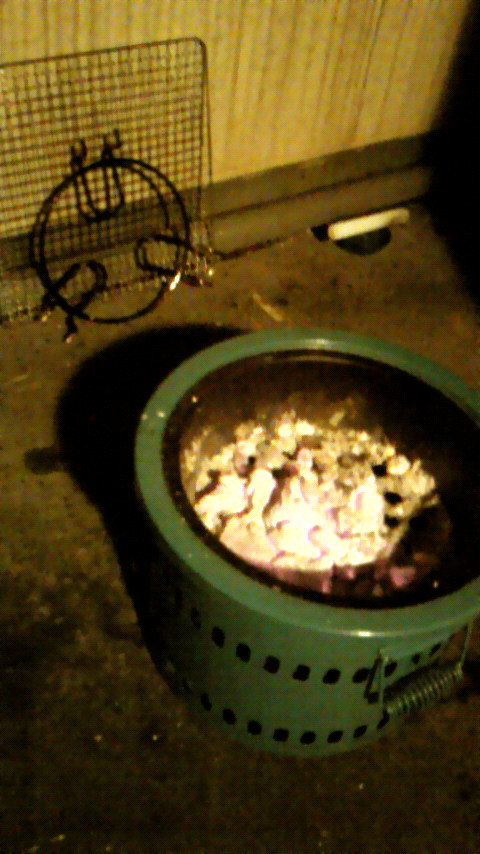 友達がキャンプをする予定が台風でキャンセル様で、夜写メが来て「七輪ゲット!薬院のど真ん中でBBQ」の文章と七輪で焼いてる写真が…!
