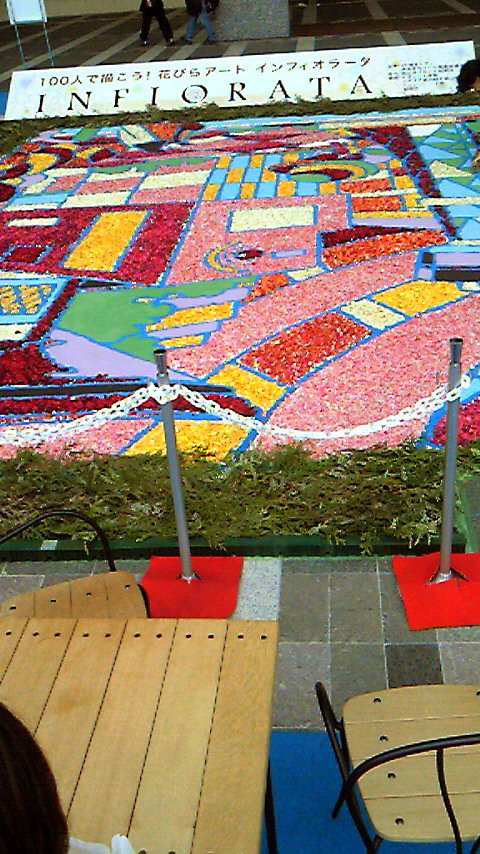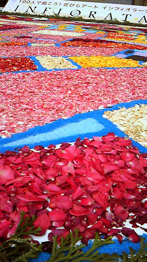 綺麗でした(*^_^*) 投稿日2011年9月27日2020年1月31日投稿者chronicle 全部花びらです。パッと見は花壇と間違えちゃいました。 アップにするとこんな感じで、制作中に風が吹いたら…って想像すると気が遠くなりました。 昨日博多駅に行ったら、博多口で花びらアートがありました。 秋ですねぇ(´∀`)