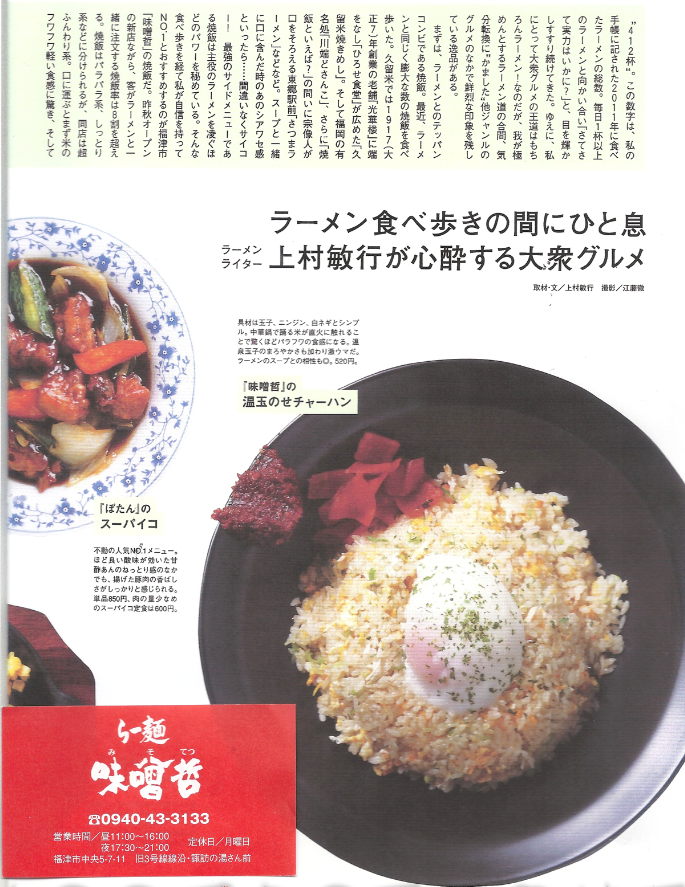 カネガエ(通称カネ)の嫁いだラーメン屋が掲載されてました。