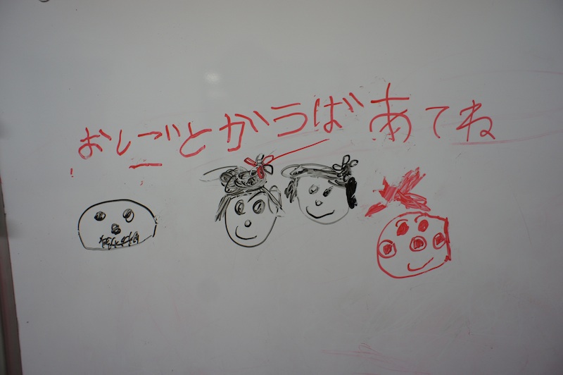 スタッフの似顔絵とアンパンの絵。