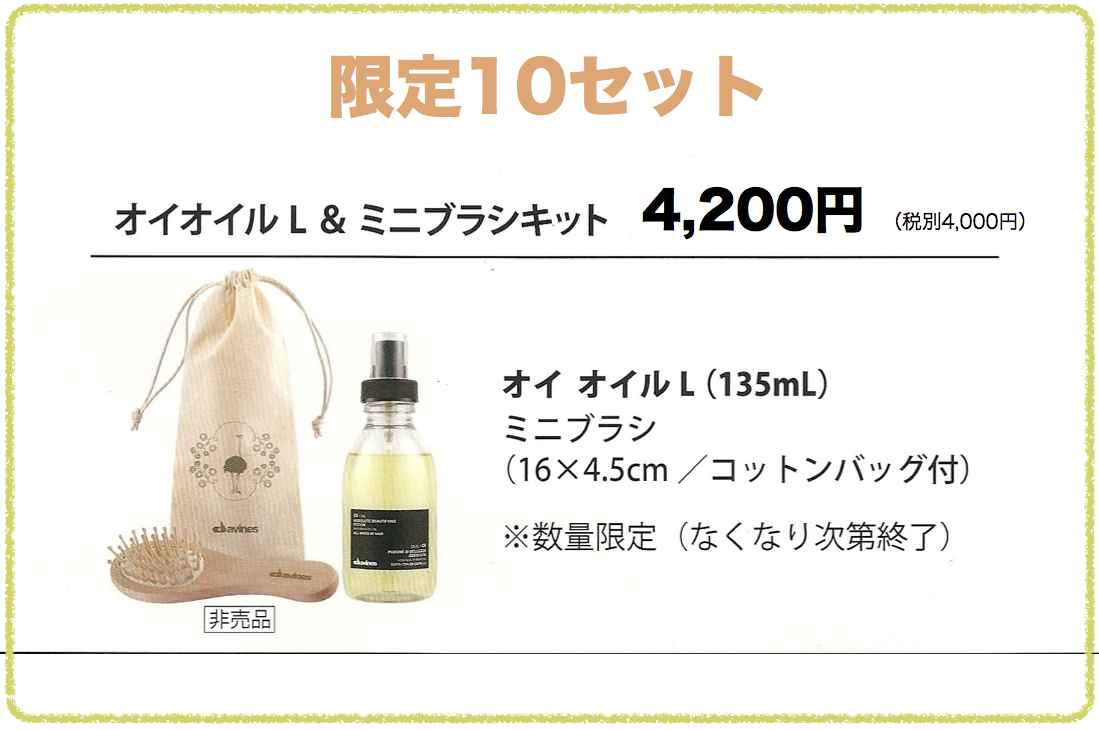 ●今度は本当に限定10セット! 投稿日2013年5月7日2020年1月31日投稿者chronicle たいへん申し訳ございません! 前回、発売限定セットの 「オイオイルL&ミニブラシ」セットが即完売してしまいあわてて再入荷! 今回は、欲を出して 「泣いても!笑っても!限定10セット」です! お店の前に行列をつくっても整理券配りませんよ!