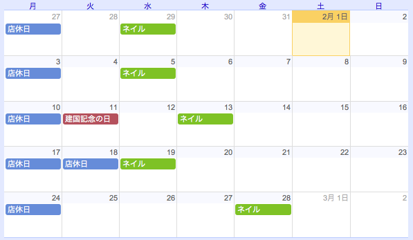 「ネイルの日」がやや少なめですが