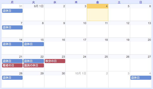 9月のおしらせ 投稿日2015年9月4日2020年1月31日投稿者chronicle 遅ればせながら9月のおしらせです! 9月は申し訳ありませんが22日はお休みいただきます! どうぞよろしくお願いいたします。