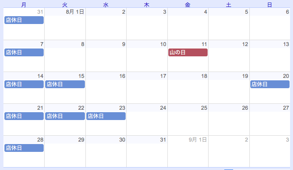 8月20日(日)〜23日(水)は4連休