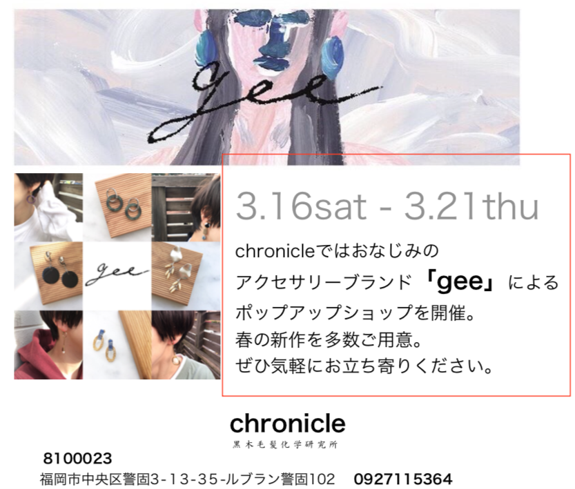 恒例のアクセブランド「gee」によるポップアップショップです!