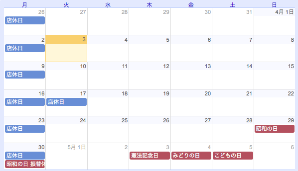 一日多めにお休みいただきます!