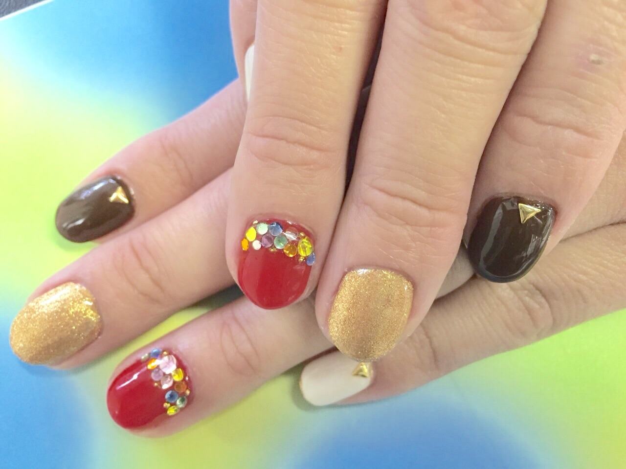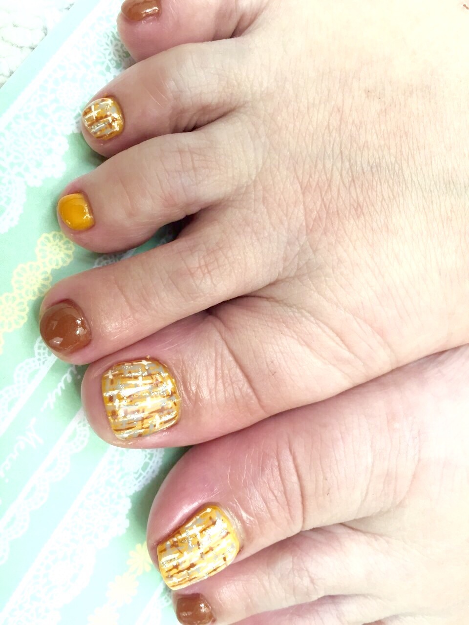 春一歩前ネイル。イエローとブラウンってあったかく見えますね♪