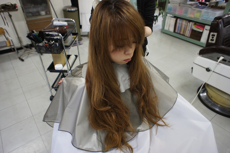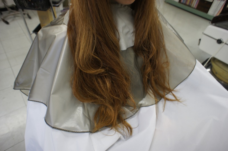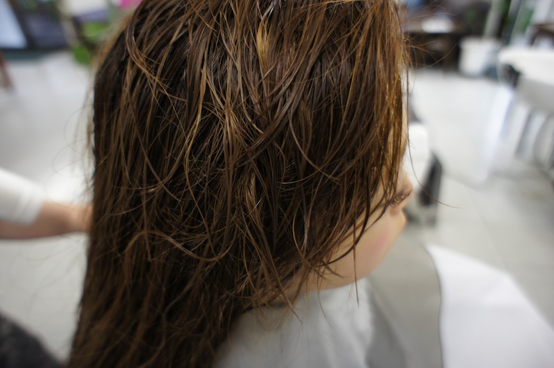 流し後、水分を含んだ重みにウェーブが耐えられてない事がハッキリと確認できます。